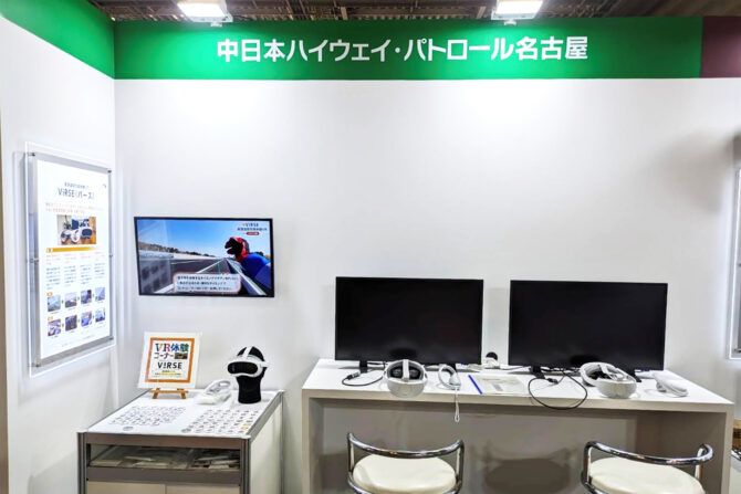 中日本ハイウェイ・パトロール名古屋は、高速道路上での危険なシチュエーションをVRでリアルに体験できる「ViRSE」(バース)を紹介。「ViRSE」は、多彩なコンテンツを通じて、高速道路上に潜む危険な状況を仮想空間で再現しており、より実践的な訓練や教育が行える次世代の安全教育ツールとして注目を集めています。体験コーナーで実際に体験し、高速道路で働く隊員の緊張感や安全確保の重要性を実感していただきました。