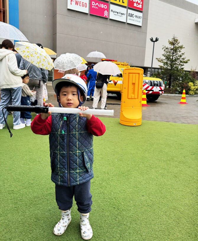 雨のなかでも多くの笑顔があふれた「はたらく乗りものフェスタ」